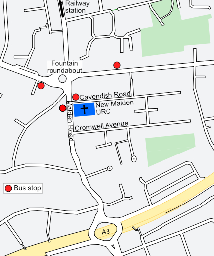 Our address is New Malden United Reformed Church, Malden Road, New Malden. KT3 6AA.